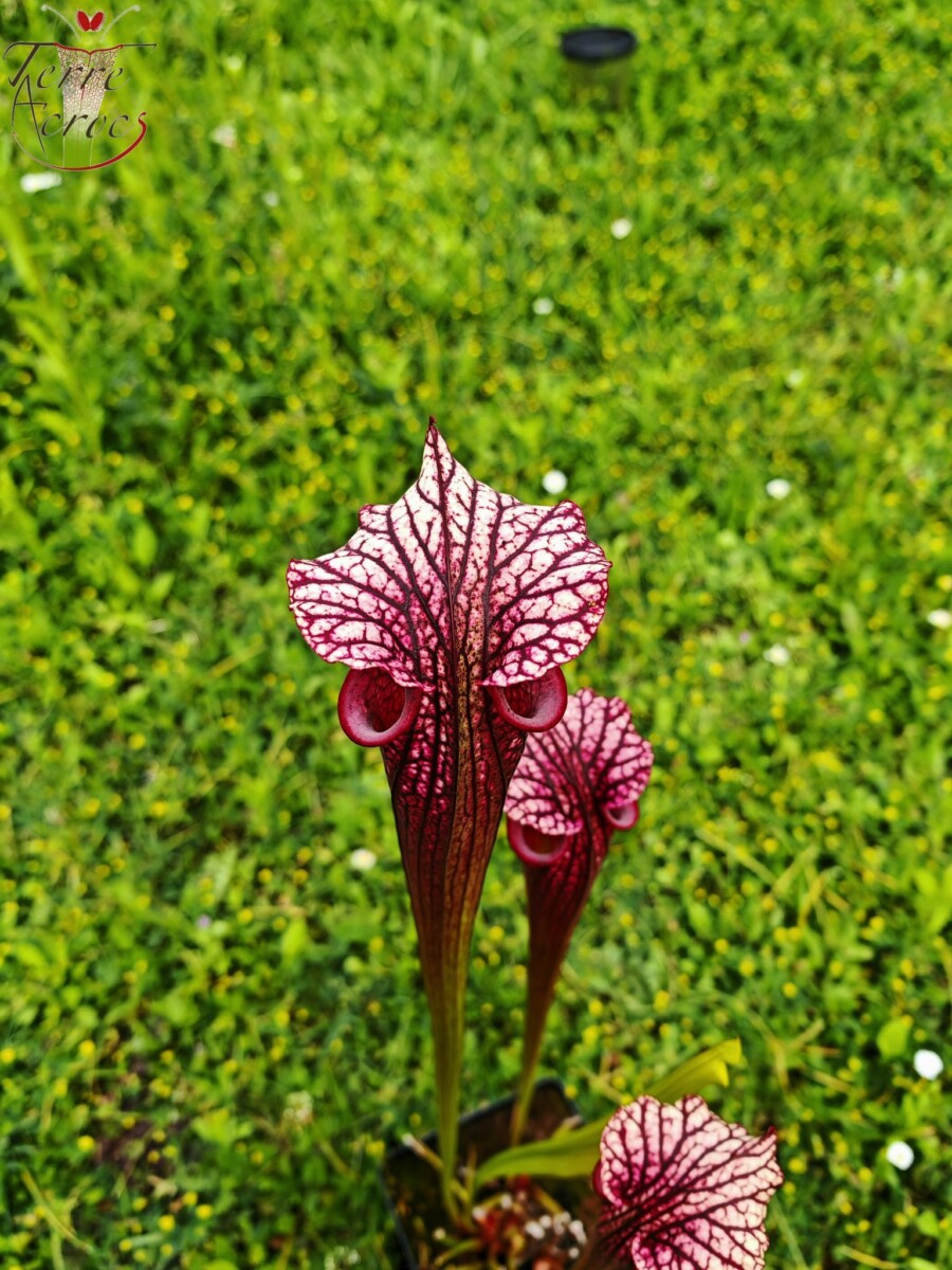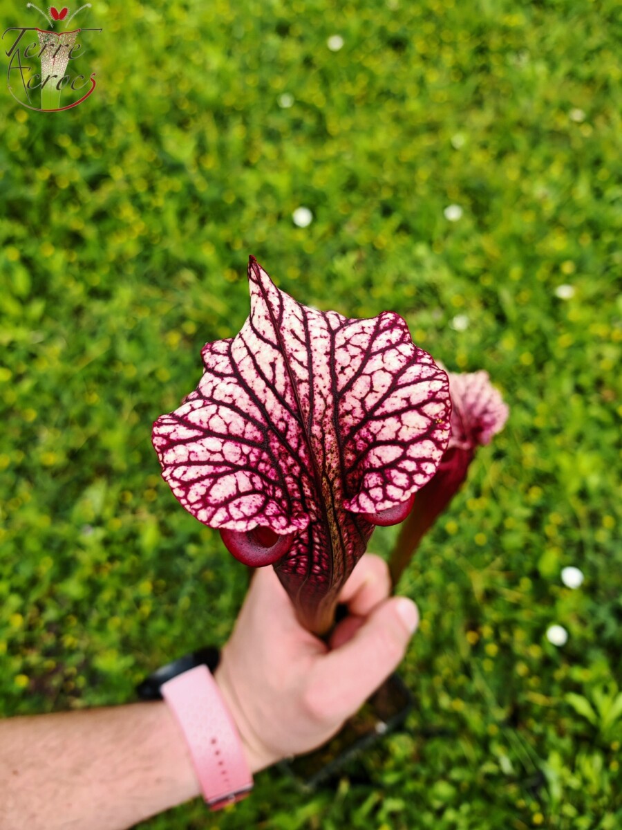 Sarracenia x moorei sélectionné d’un croisement d’un des plus beaux rubricorpora avec le célèbre leucophylla « Large pink Lipped ».